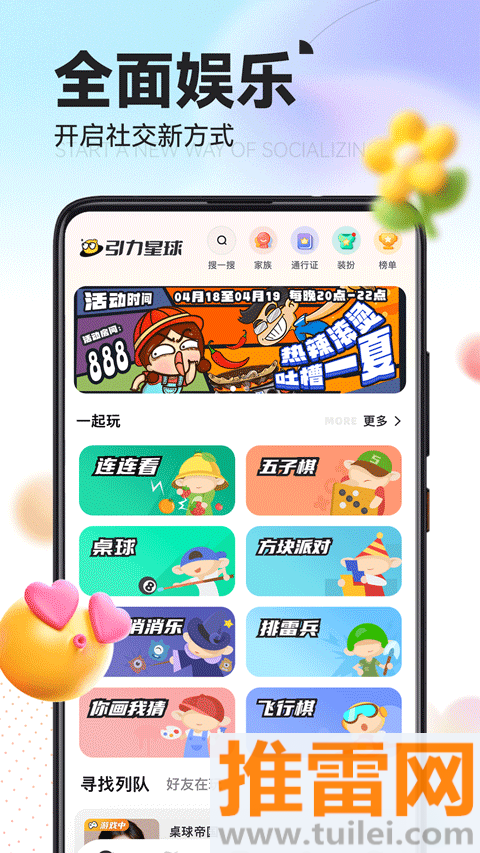 2、如果你是一个游戏达人,直接点击屏幕下方的星球图标就能进入游戏专区,这里摆满了各式各样的互动项目,总有一款能让你玩得爱不释手。