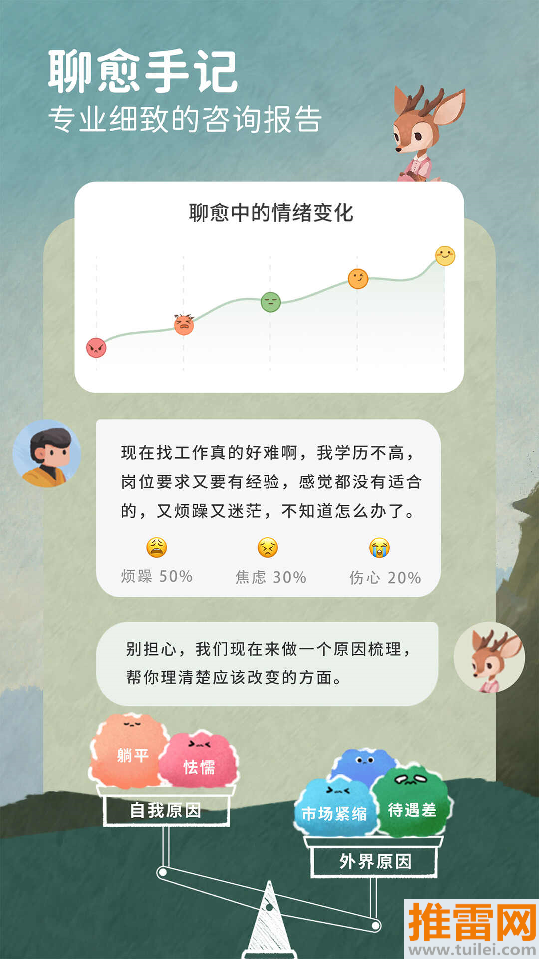 1、现在林间聊愈室全面开放了文字输入功能,这对那些性格比较腼腆、一开口就容易紧张的朋友来说简直是救星,打字也能把委屈说清楚。