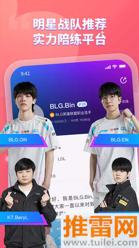 比心App是英雄联盟BLG和KT战队官方指定的合作平台,不是随便哪个软件都能挂这个名头的。