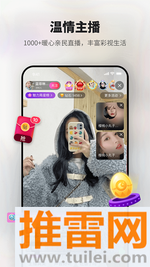 3、直播支持“多画面连线”,4人同步视频K歌、连麦跳舞,曲库百万首老歌同步歌词。