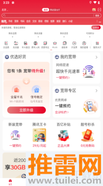 3、成功登录后主页会显示当前套餐余量和推荐业务。