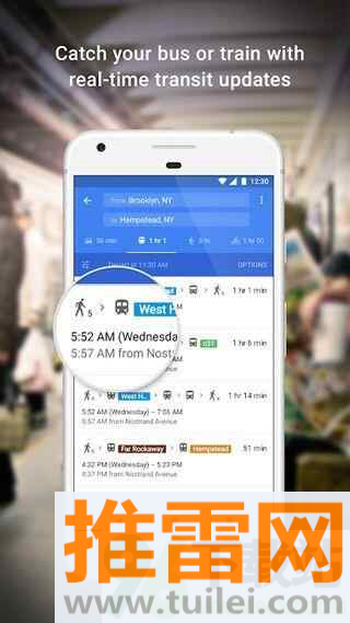 2、选择需要前往的地点后点击路线按钮,设置出发点和交通方式即可获得导航指引。