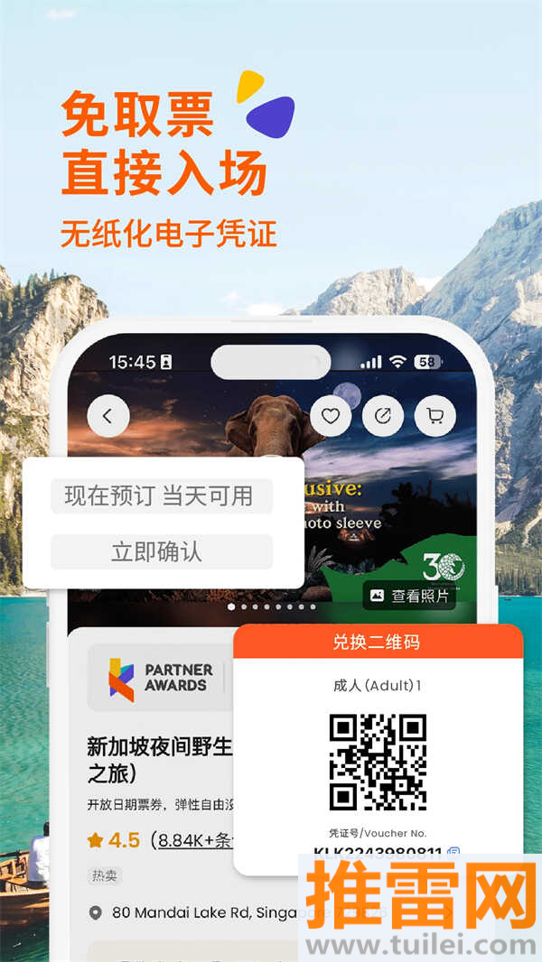 选定日期下单后5分钟内出凭证,扫码直接入园,热门景区免排队。