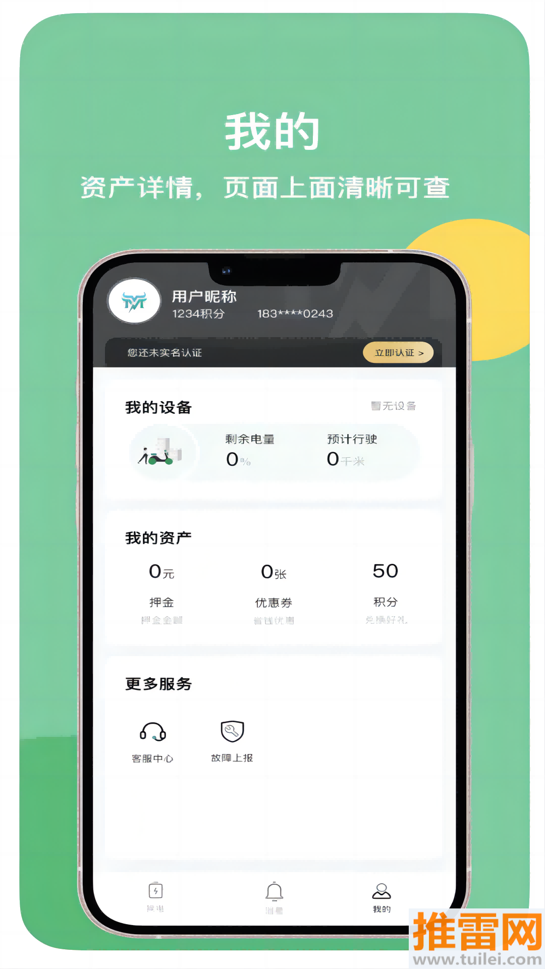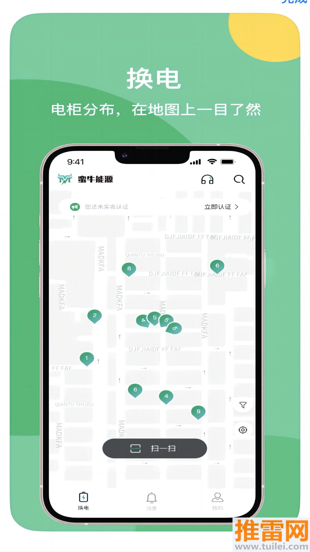 1、下载软件后记得先用手机号注册登录,并且完成实名认证,这是使用换电租赁服务必须要做的第一步。