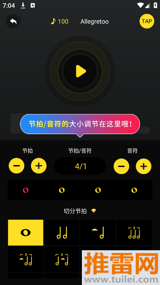 1、界面设计得非常极简主义,没有那些多余的干扰元素,让你一眼就能看懂怎么调节速度和拍号。