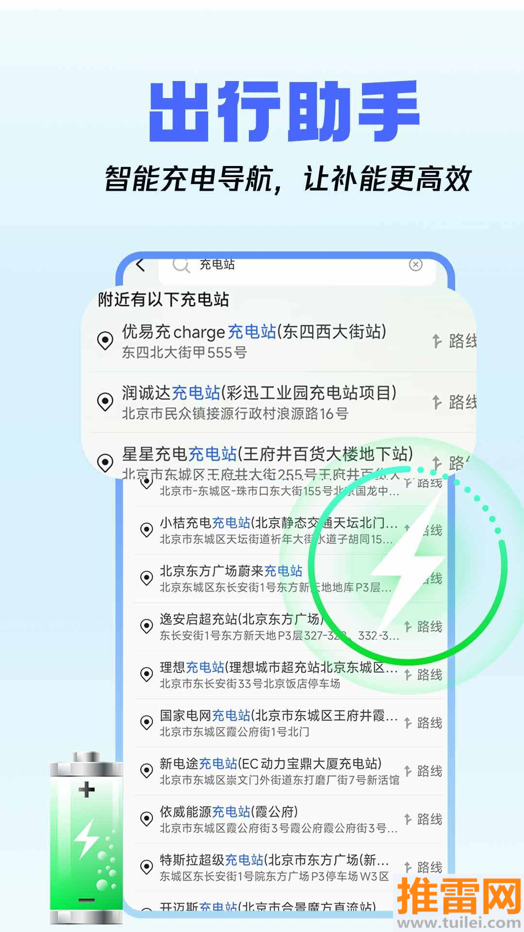 3、新能源车主也不用怕没电,它能帮你快速找到顺路的充电桩及时进行补能。