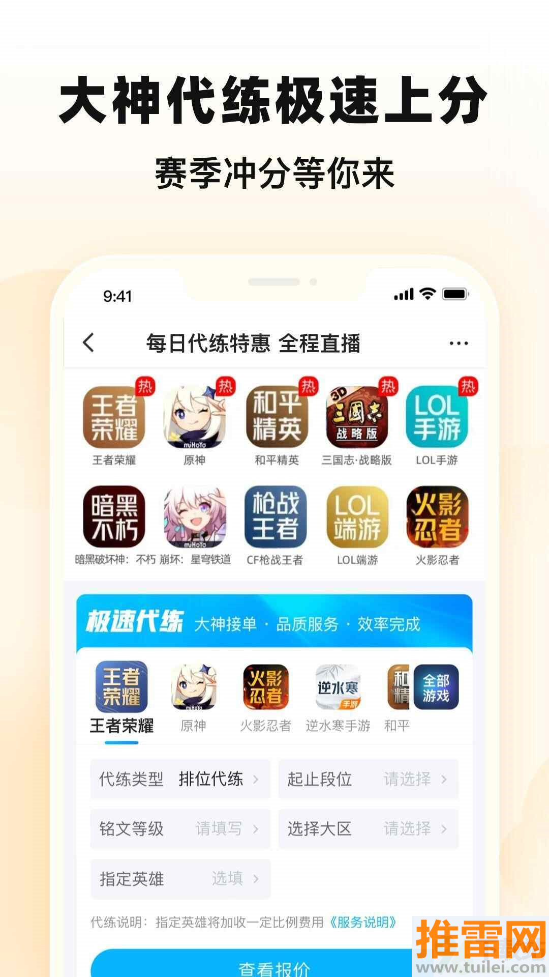 百星王者带队上分,各类活动代肝全程托管,实力选手在线接单,再难的段位也能轻松搞定。