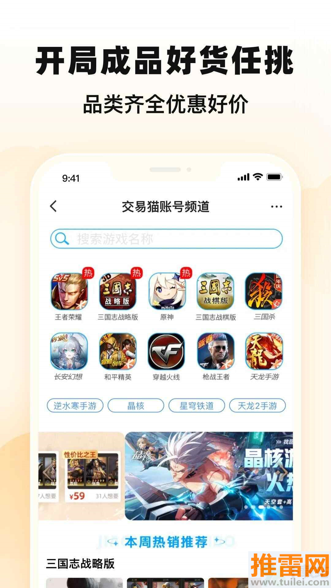 1、商品种类齐全,从账号到道具应有尽有,满足玩家各种交易需求。