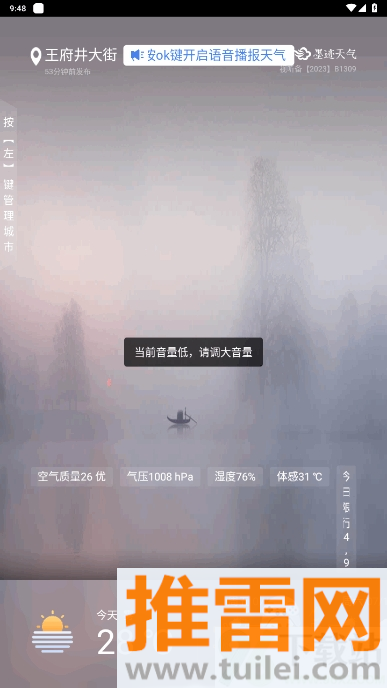 支持语音提示功能,打开后系统会用清晰的声音告诉你今天几度、有没有雨,听个天气不用盯着屏幕。