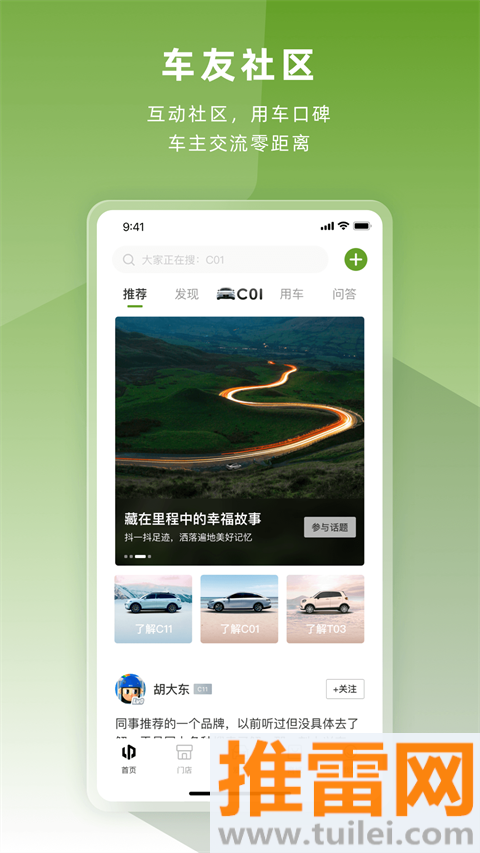 1、注册后先“车主认证”,扫描前挡左下角二维码,一车一号,不可重复绑定。