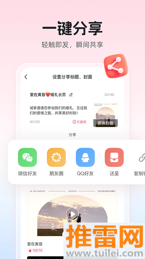 婚贝请柬=手机里的“婚礼小秘书”+“设计师”+“导航员”,从电子请柬到婚礼九宫格、从结婚证件照抠图到婚礼logo,一条龙模板包办:中式烫金、韩式极简、森系小清新近千套,想换颜色、加照片、改音乐,手指点点3分钟搞定,宾客打开请柬就能一键导航、在线送礼、弹幕祝福,后台实时统计谁来了谁没来,告别电话轰炸,满月、生日、乔迁同样适用,一个App把人生仪式感全包圆。