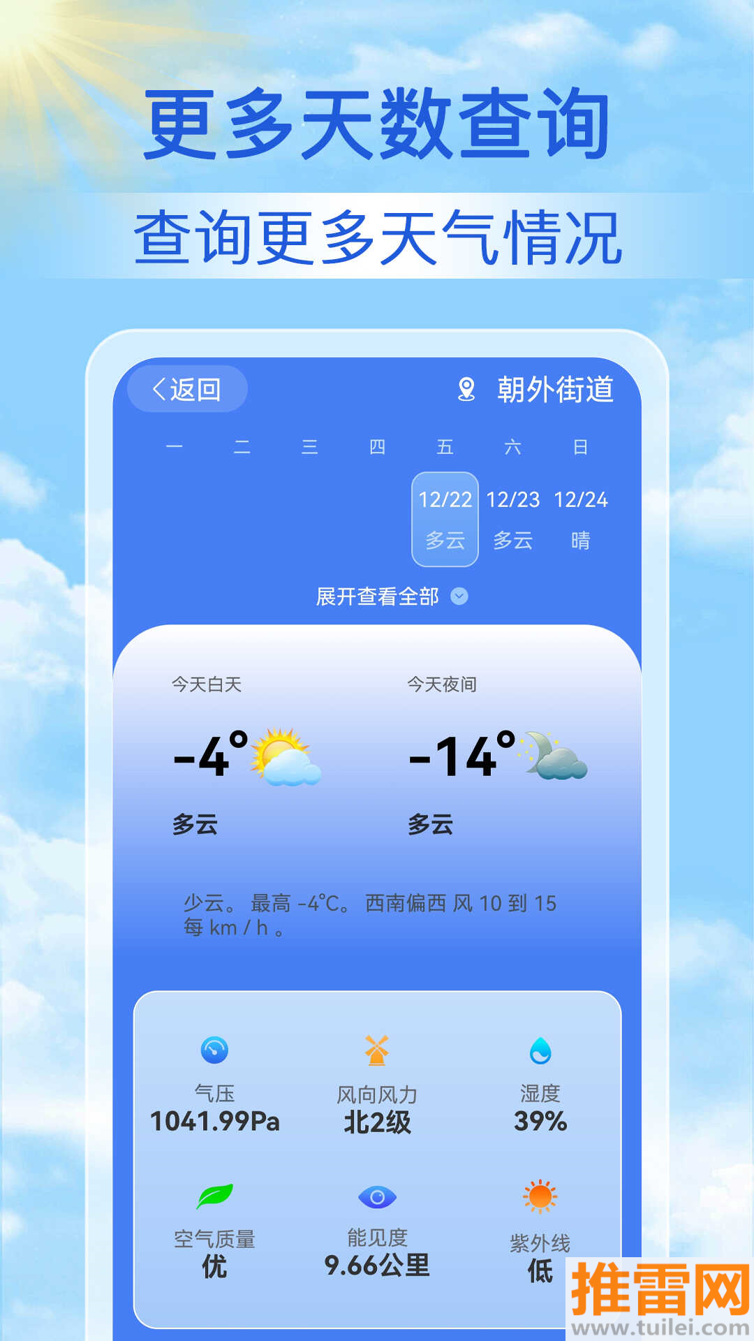 除了能看个大概的冷暖温度,还能知道具体的空气湿度和风力大小等细节数据,帮你把天气的底细摸得一清二楚。