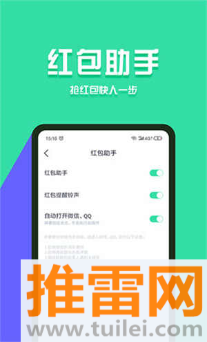 3、红包助手自动点,延迟低于50ms,春节抢钱快人一步,语音变声“萌妹/大叔”随意切。