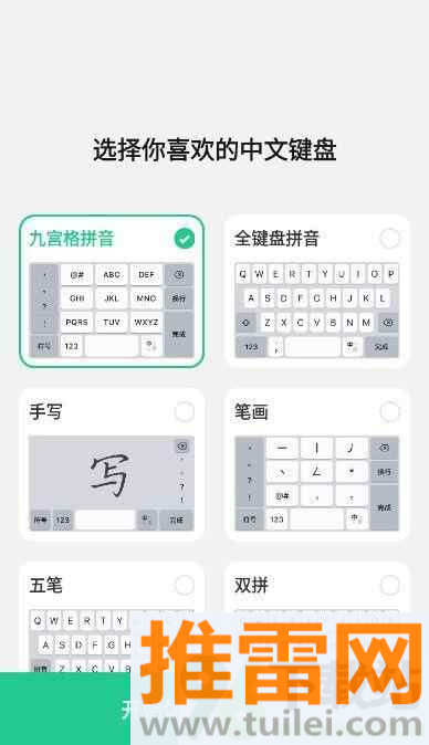 3、键盘左下角的图标可以让你在九宫格、全键盘和手写等不同模式间自由切换。