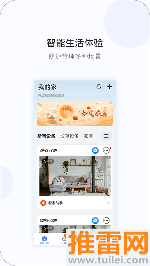 4、一个账号能分享十五个家人,权限分级,老人只看画面不能转云台。