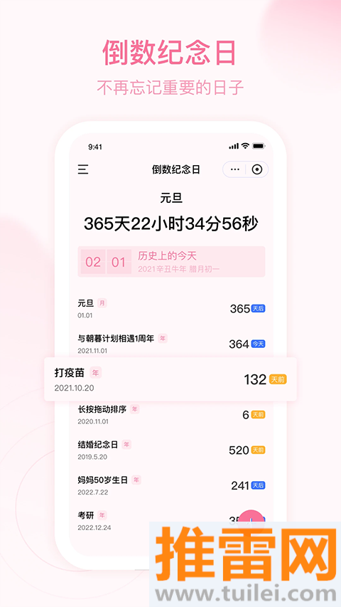 生日、考试、纪念日可设倒数,支持“每年重复”和“农历”,小组件可放到桌面,每天睁眼就看到“距离考研还有88天”。