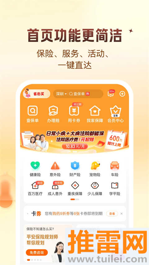 中国平安保险好生活App就是现在很多家庭用户天天打开的那个“生活小管家”,特别适合那些平时忙工作、懒得跑银行柜台、又想把保险和生活服务一网打尽的普通人用,打开App首页啥都有:车险、健康险、意外险这些保险一键买,理赔材料手机拍拍上传审核就行,再也不用跑网点排队了,生活缴费、手机充值、美团外卖、问医生、猫眼电影票这些日常小事也直接在里面搞定,省得来回切App,最实惠的是新人注册有大礼包,丝苗米、洗衣液免费领,父母体检券也能白拿,分享给朋友还能赚积分,积分商城里换实物和服务券,感觉像在薅羊毛,很多人用下来都说,以前买保险总觉得麻烦,现在App里一站式全包,理赔也快,生活服务又方便,装了之后手机里少了好几个App,日子过得轻松不少。