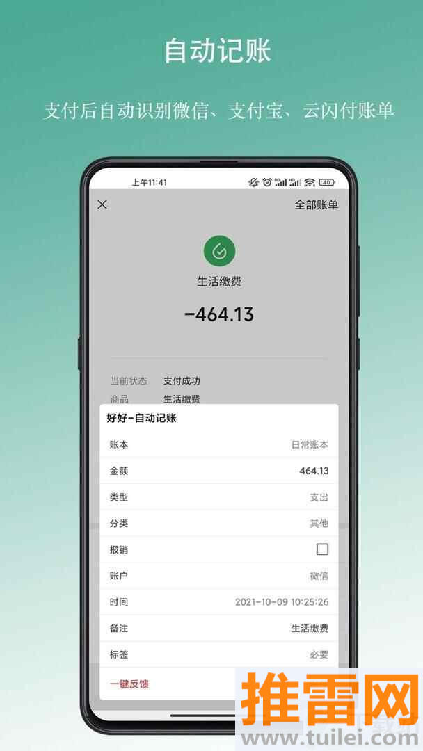 房贷、房租等固定收支可以设置自动记账,到日子就会提醒你确认金额,再也不会忘记还信用卡的日子。