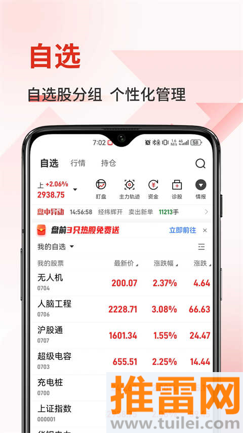 2、自选股最多建20个分组,长按股票可拖动换顺序,方便轮动观察。