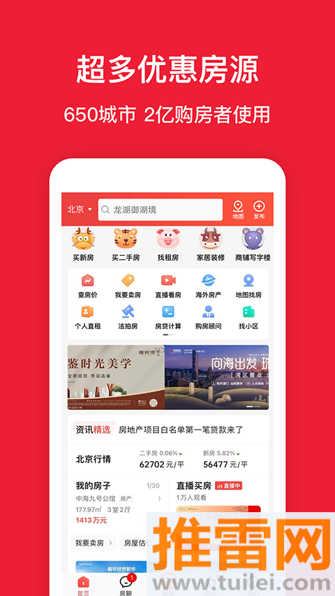 房天下App就是现在很多想买房、卖房、租房、装修的朋友手机里最常打开的那个“房产小管家”,不管你是刚需族想找个合适的小窝,还是投资客盯着学区房、商业地产,或者业主想卖掉手里的房子换大点的,里面信息都特别全,全国600多个城市的新房、二手房、租房房源基本都覆盖了,98%以上的房源实时更新,想查房价?随手扫一扫楼盘,成交价、挂牌价、周边配套立马出来,想实地看房?直播看房、专业主播带你逛售楼处,足不出户就能挑,想省钱?房贷计算器一键算月供、税费,还有各种金融服务推荐低息按揭,装修党更开心,百万图库随便翻,风格、价格、小区精准搜,免费验房、量房、设计、智能报价全都有,找装修公司、买建材家具也一站式搞定,用了之后很多人说,以前买房得跑中介、刷各种网站累死,现在一个App全包,信息透明、决策快,省时省力还少踩坑,简直是房产界的“万能钥匙”。