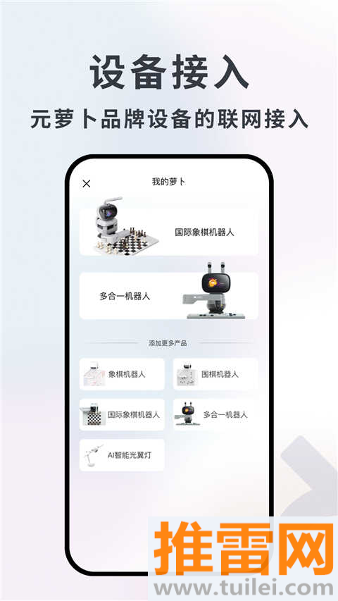 元萝卜App是上海元罗卜智能科技有限公司元萝卜家用机器人品牌的手机管家,专为那些买了AI下棋机器人或者智能台灯的爸妈和小棋手准备的,现在象棋围棋国际象棋这些机器人卖得挺火,很多人家都放一台让孩子练棋涨段位啥的,APP这东西用着简单,基本买回家扫个码连上WiFi就能玩,家长上班在外也能远程看孩子下棋进度、对局记录,还能分享给老师或者棋友圈炫耀,特别适合6岁以上小孩,从入门到大师级都能陪练,AI棋力分25级啥都有,不会觉得太简单或者太虐,夏天冬天开着空调对坐一局,培养专注力和逻辑思维比上网课强多了,商汤的视觉AI牛,机器人抓棋子稳稳的毫米级精度,APP里数据一目了然,很多人说用半年孩子棋力蹭蹭上涨,亲子互动也多了,值回票价。