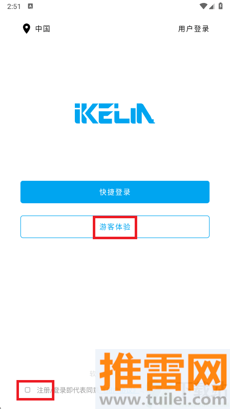 4、勾选注册协议并选择游客模式体验,不需要绑定手机号也能先试用大部分基础功能。