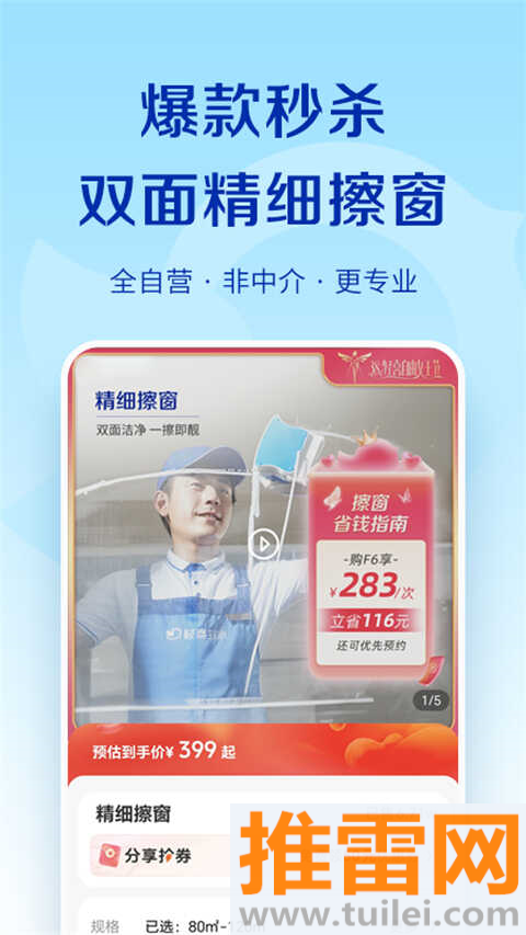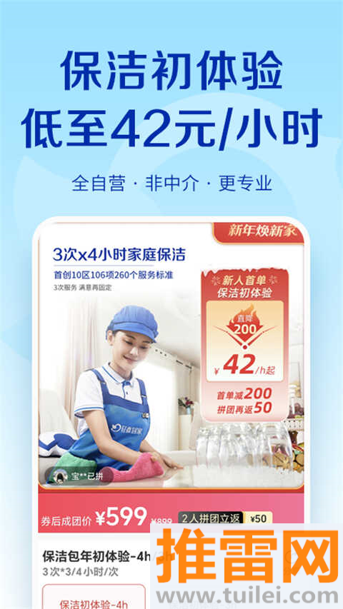 3、新人福利和限时秒杀常驻“福利”页,保洁、清洗等高频服务经常有超值折扣。