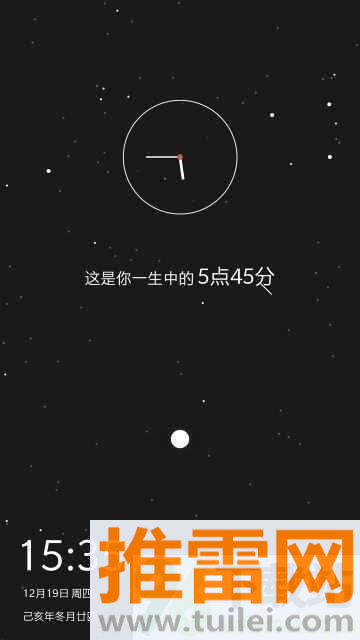 6、当应用成功后,系统将提示“锁屏壁纸已开启”,这时你可以锁屏查看并切换两种时钟显示,通过点击锁屏中间的月亮或圆形图标。