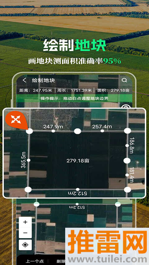2、首页点画地块,先把自家地界画出来,点确定就能看到土地面积。