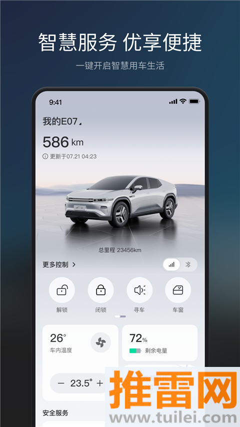 一键解锁车门、升降车窗、启动空调这些操作直接在App里完成,随时随地管车。