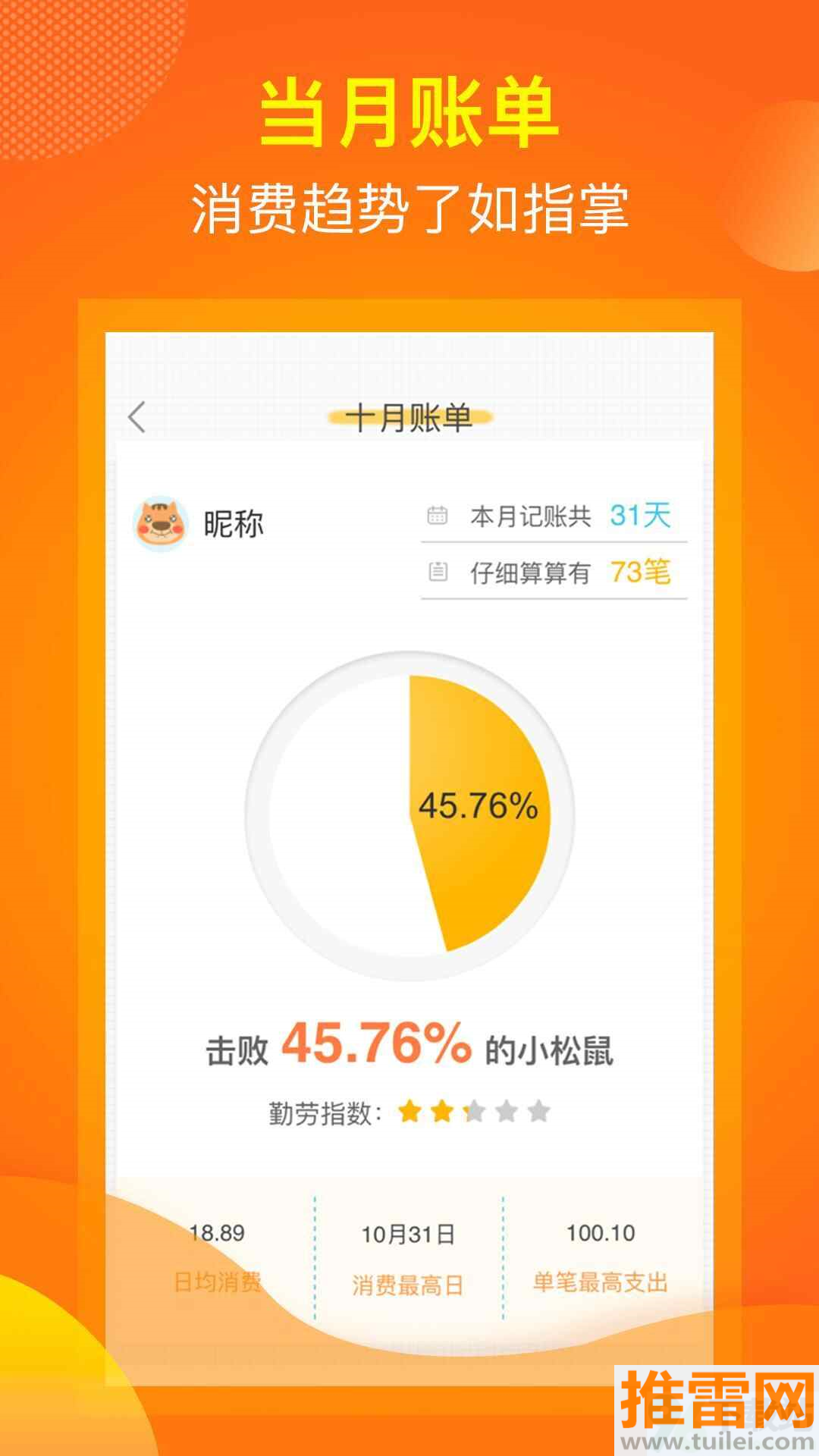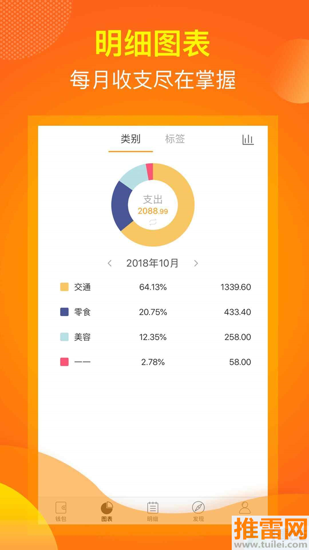 月度消费自动生成环形图,哪项支出超标了一眼就能看出来。