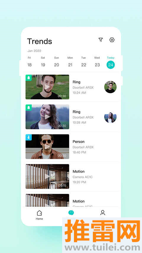 接入家里的监控后,随时切画面看客厅卧室宠物小孩动静,支持云存和本地SD卡录像。