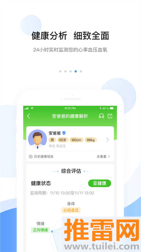 每天一份健康解析,月报年报也有,中西医建议一块儿推,告诉你吃啥补啥、穴位怎么按,医生版app还能同步给家庭医生看。