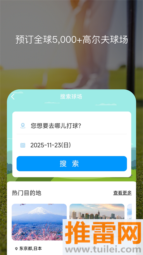 输入想去的球场名或目的地,列出亚洲欧美上千家场地和套餐详情,三步选时段人数就能锁单,酒店滑雪一并下。