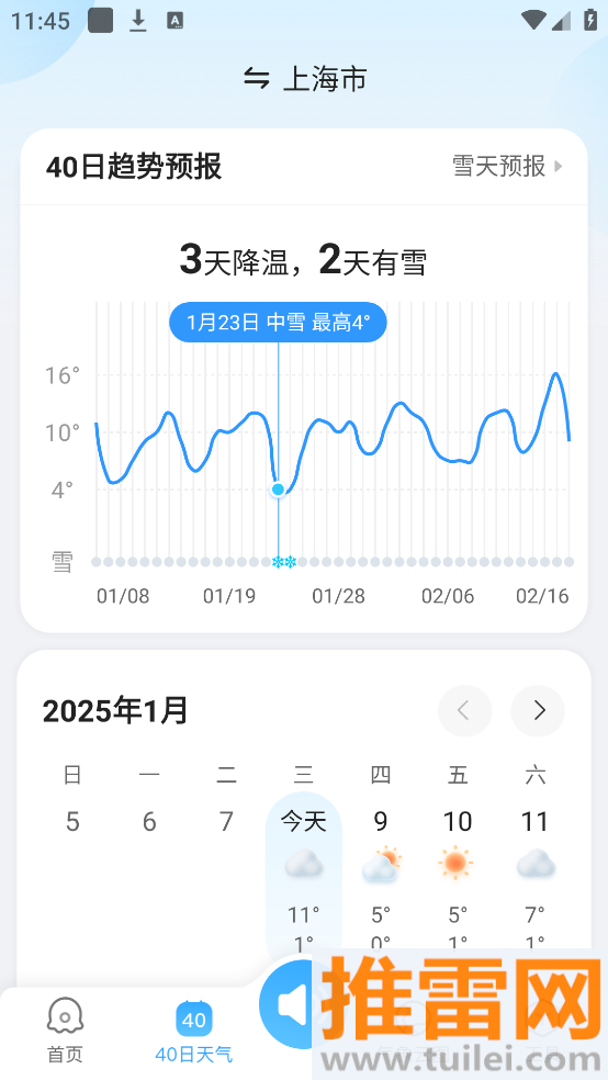 一眼就能看透未来四十天的阴晴雨雪变化,不管是降温还是下雨都能帮你提前做好一个月的打算。