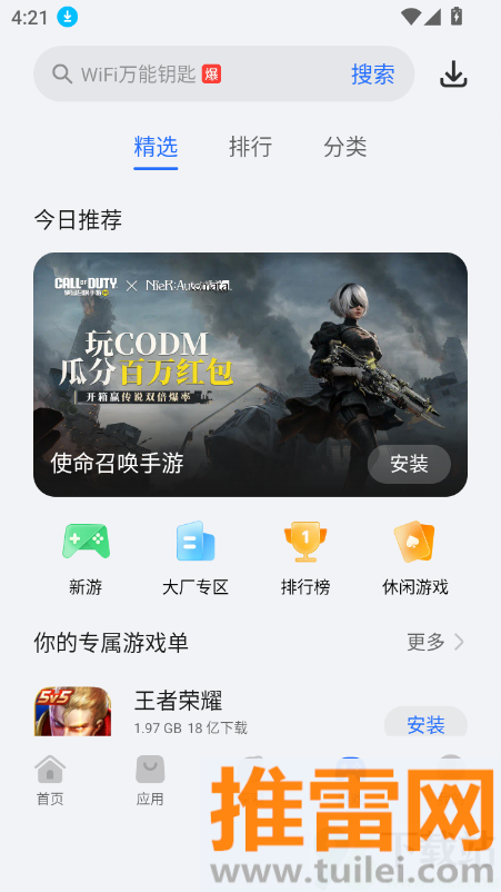 通过关键词直接查找想要的软件或者游戏,搜名字就能快速定位,不用一页页翻找。
