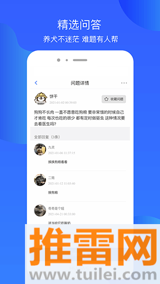 专门给养狗的人建了个交流的地方,大家可以互相提问,分享养狗过程中的心得。