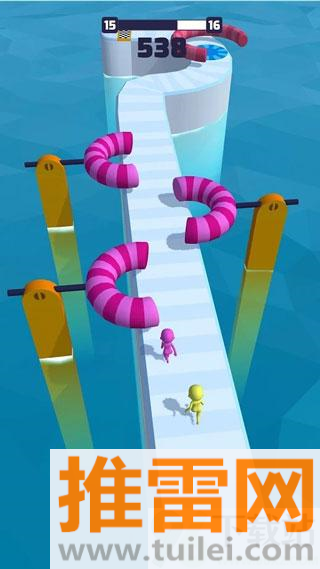 1、游戏里头你就是个小人儿,一路往前冲,不用回头也不用拐弯,终点在哪你就往哪奔,路上有啥障碍就得靠自己反应快点绕开或者避开,光跑得快没用,还得跑得巧。