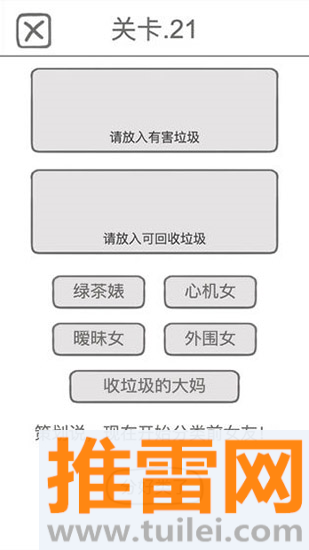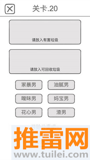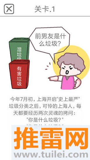 前男友是什么垃圾官方版这游戏一开始听着挺扯的,前男友还能分什么垃圾?可真上手才发现,它把正经的垃圾分类题和那种带点调侃的生活梗混得刚刚好,你一边要记住电池是有害垃圾、香蕉皮是湿垃圾,一边还得面对“前任送的烂玫瑰算什么”这种题,答对了轻松过关,答错了还能看你前男友被扔进粉碎机,说白了就是拿点小情绪当调料,但核心还是考你环保常识,玩着玩着还上头。