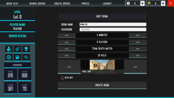1、进入游戏主界面,点击底部"Create Room"创建对战房间