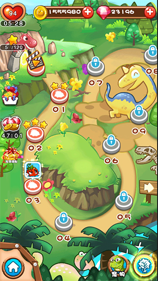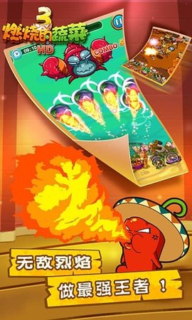 燃烧的蔬菜3恐龙来了是一款弹射竞技游戏,属于燃烧的蔬菜系列的第三部作品,延续历代玩法,玩家通过滑动屏幕控制弹弓,将小蔬菜弹射出去攻击敌人,弹弓还能储蓄能量,能量满额后可释放炫丽的特殊技能。每日摇奖送不停,摇奖树上会随机刷出金币和钻石,玩家可以直接拾取。达到一定成就时也可以获得丰厚的金币和钻石奖励。