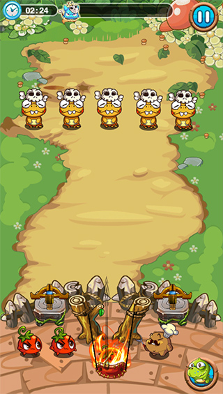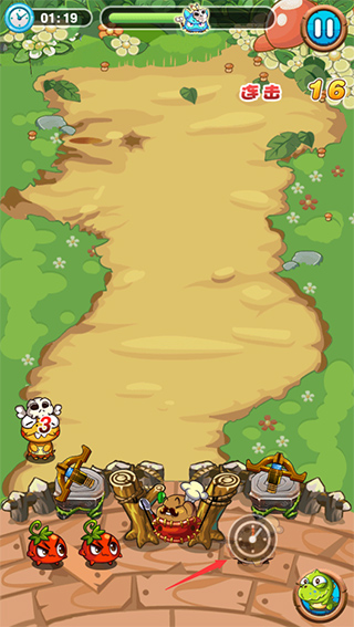 3、游戏的操作和前作都是一样的,玩家依然只需通过滑动屏幕来控制弹弓将小蔬菜弹射出去攻击敌人,调整好角度和力度是关键所在,使用特殊技还有特效的哦。