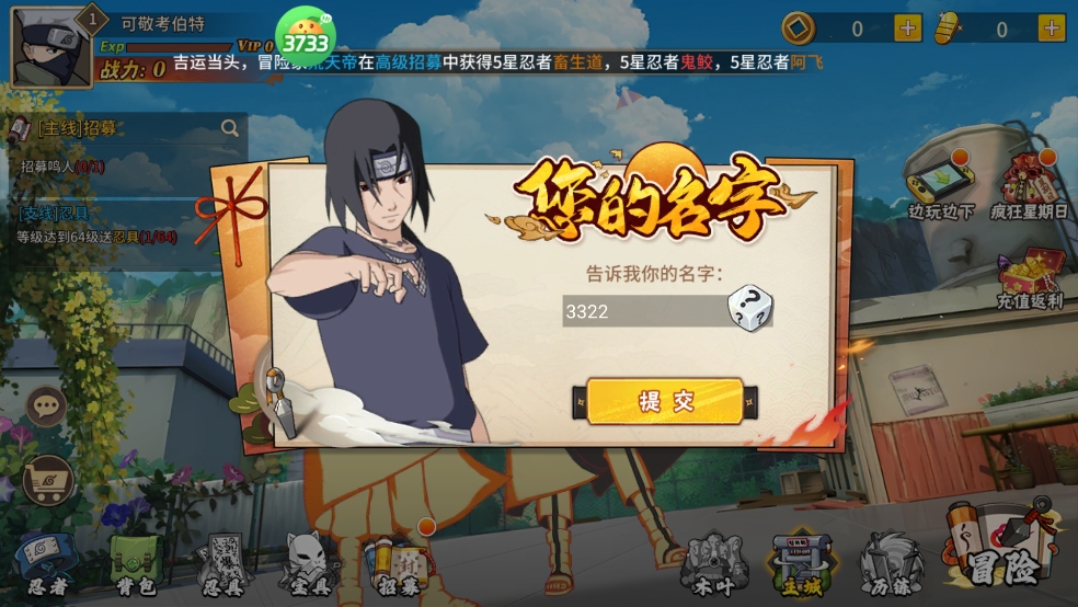 2.拥有独特的抽卡系统,玩家可获得鸣人、佐助等角色以及忍术与通灵兽。