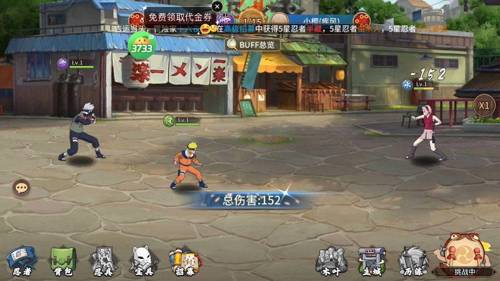 1.采用放置玩法,玩家选择出战忍者后,小队自动冒险,无需复杂操作,随时畅享游戏。