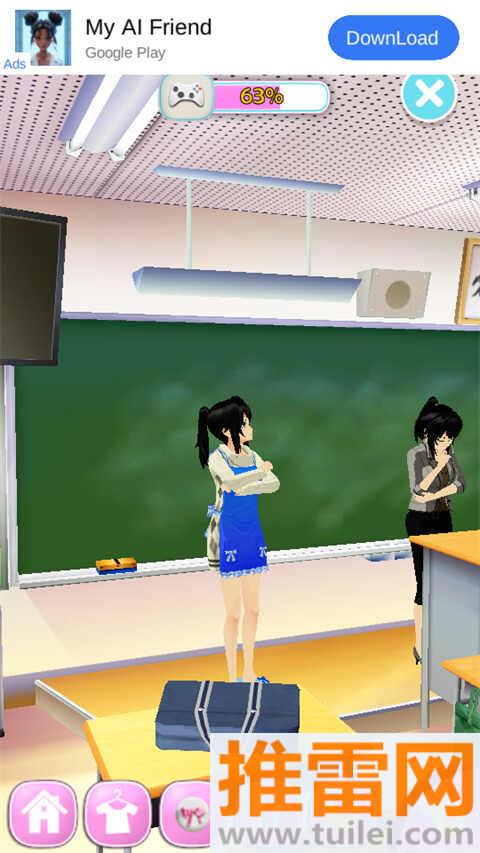 2、如果想看她学跳舞或者上文化课,就直接切换到学校场景,看着她在那里认真学习的样子还挺有成就感的。