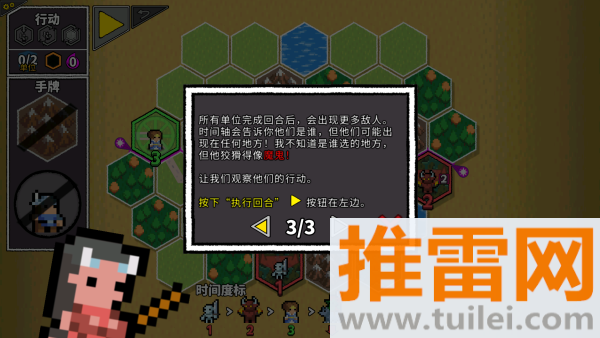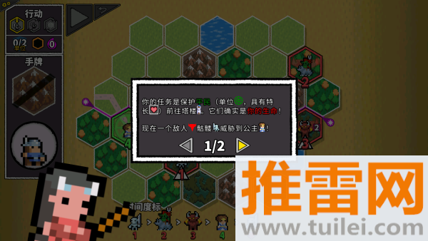 2、进入关卡后,仔细观察地图上的敌人分布和你手里的卡牌,思考怎么改变地形能让局面有利。