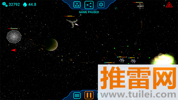 3、战斗节奏特别快,铺天盖地的敌人会朝你涌过来,你需要灵活指挥舰队走位和开火,场面非常火爆。
