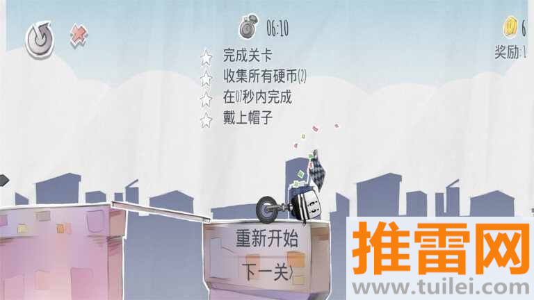 4、通关后根据表现评定星级,三星需同时满足时间达标、零摔车、全道具收集三项条件。