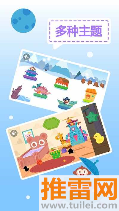 多多爱拼图就是给2到5岁小娃专门做的“动手动脑玩具”,不用家长在旁边教,孩子自己点开就能玩——拖一块小恐龙拼图到草地背景里,放对了位置它会“嗷”一声叫,还会念“恐龙”两个字,画面全是卡通风格,有冰雪世界、魔法森林、儿童乐园这些主题,每换一个场景就像进了新故事,拼的不只是形状,还有颜色、动物、交通工具这些常识,边玩边认东西,操作简单到只会点屏幕的孩子都能上手,关键是不吵不闹、没广告弹窗,娃能安安静静坐十几分钟,家长也能喘口气。