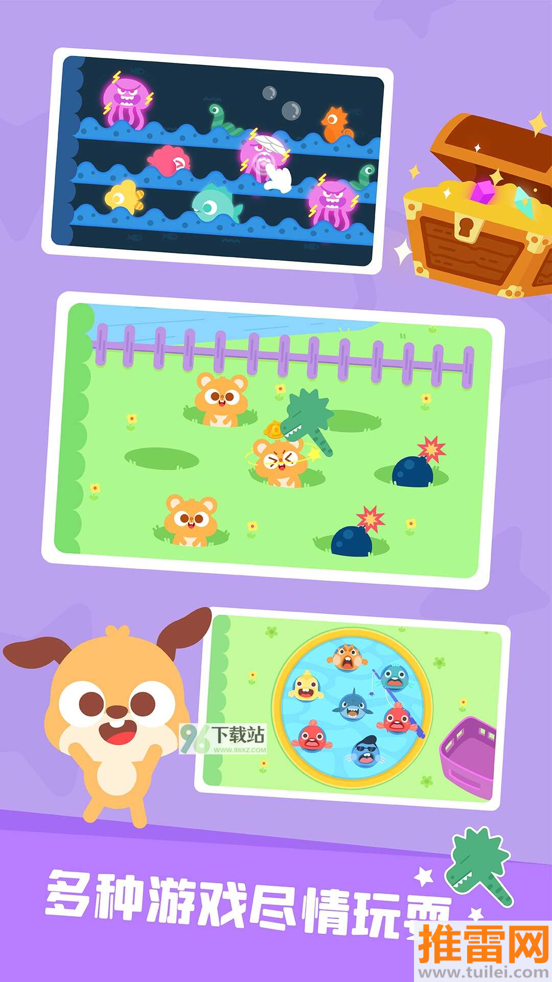 1、游戏内设多个主题互动区,包括钓鱼池、美食街、打地鼠台、转盘抽奖等,每区对应不同认知训练目标。
